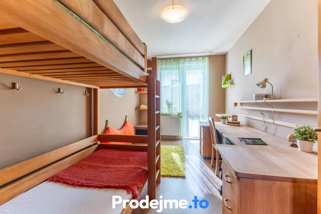Byt se nachází ve třetím podlaží čtyřpodlažního cihlového domu. Dispozice 3+1 o podlahové ploše 79,2 m² je prakticky řešená pro každodenní život. Tvoří ji prostorná předsíň, ložnice, kuchyně a obývací pokoj, přes který se vstupuje do dětského pokoje. Z něj je přístup na balkon o velikosti 3,4 m² vybavený markýzou. Okna ložnice a dětského pokoje směřují do klidného zeleného vnitrobloku, takže vás při odpočinku nebude nic rušit. Všechna okna v bytě jsou navíc doplněna sítěmi proti hmyzu.