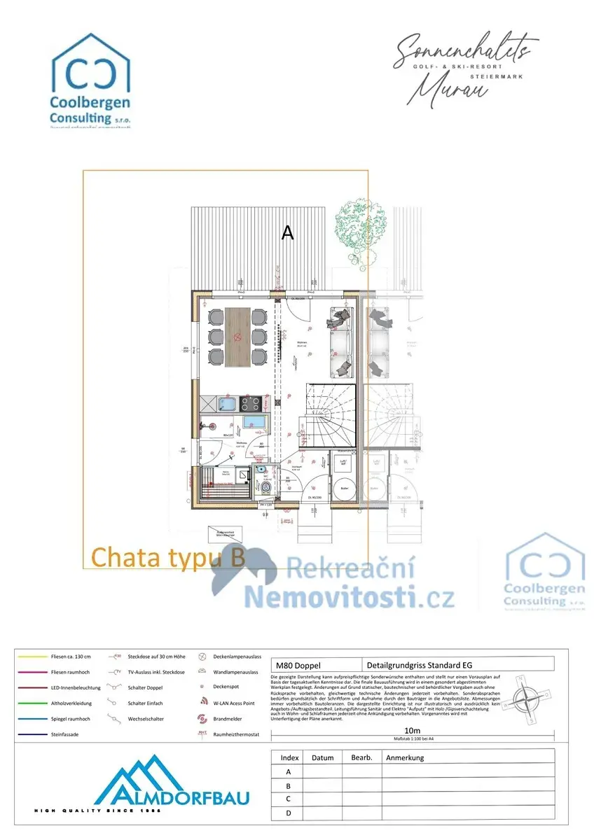 Chaty typu Lahneck mají zastavěnou plochu 40 m2, 72 m² obytné plochy, 3 ložnice, útulný obývací pokoj s krbem a terasu s výhledem do údolí.