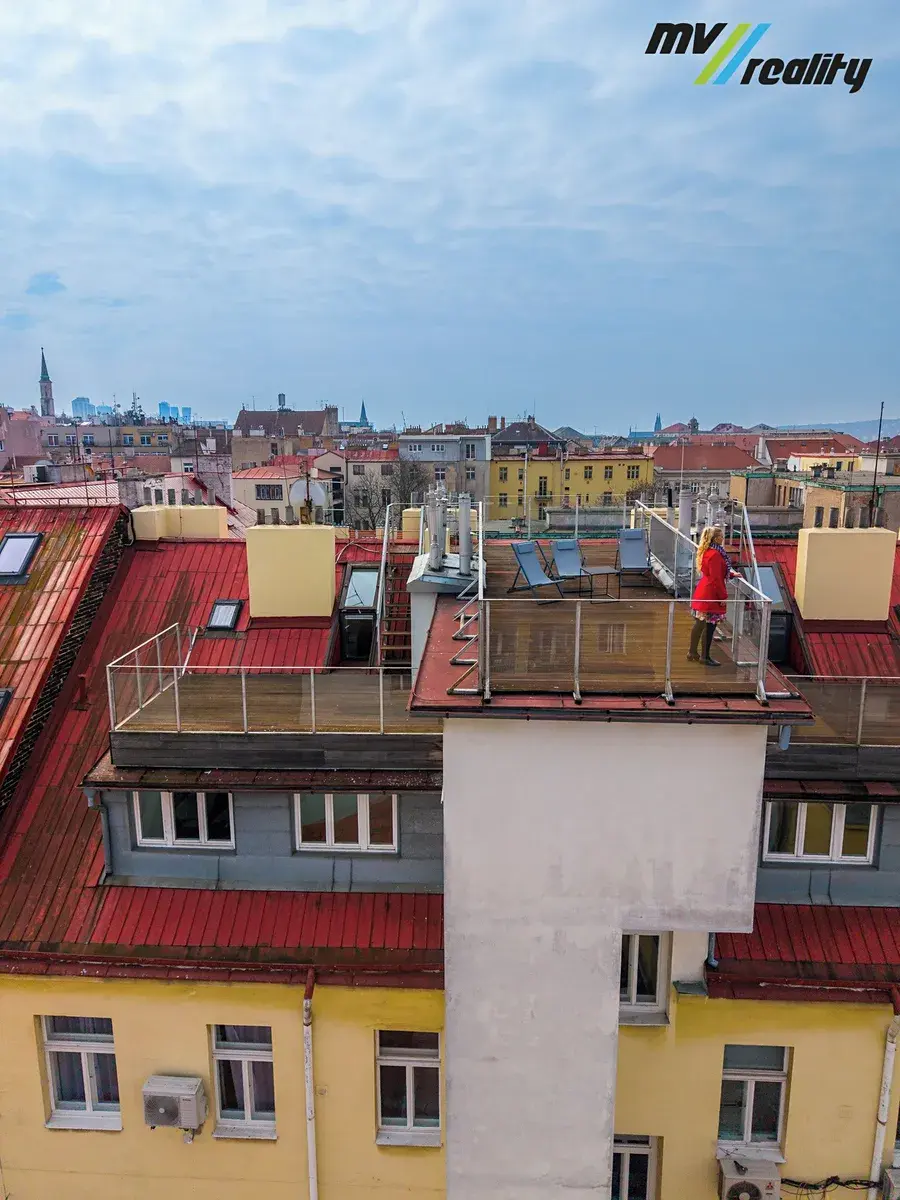 Byt je řešen jako mezonet a před třemi lety prošel částečnou rekonstrukcí. Velkou předností jsou tři terasy, které nabízejí příjemný venkovní prostor s úžasnými výhledy na Prahu.