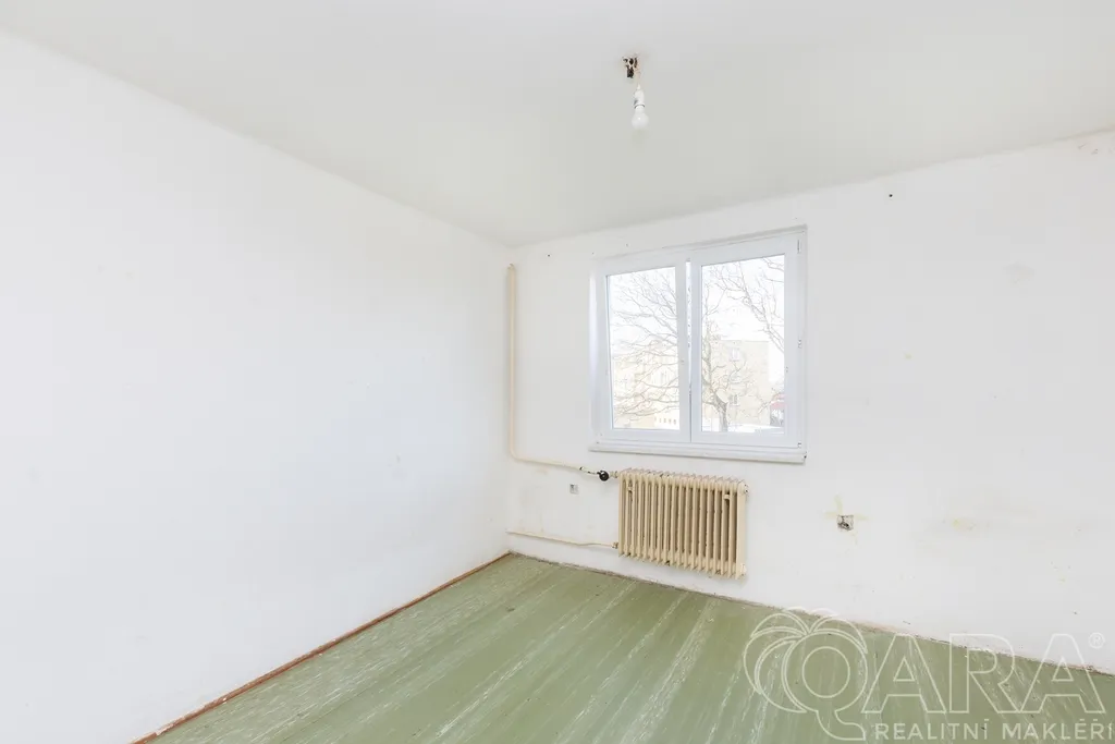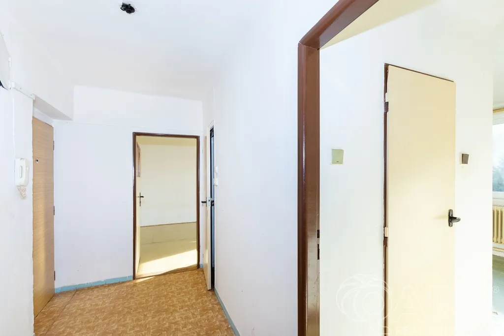 Díky orientaci oken je byt světlý a vzdušný, což je přesně to, co dává smysl. Velká chodba nabízí prostor pro vestavěné skříně, dva samostatné pokoje, obývací pokoj s možností propojení s kuchyní.
