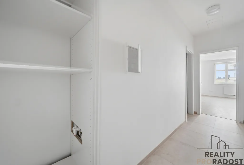 Kuchyňská linka je plně vybavena spotřebiči – indukční varná deska, trouba, mikrovlnná trouba, myčka 60 cm a lednice s mrazákem. Celý byt je proveden v moderním standardu s důrazem na kvalitu materiálů.