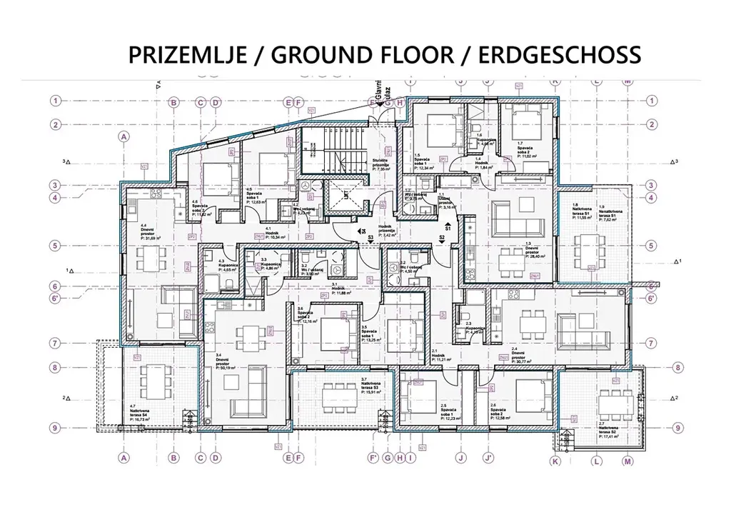 Apartmán S2 o ploše 84,25 m2 se nachází ve zvýšeném přízemí třípodlažní budovy s celkem 10 apartmány a výtahem, je orientovaný na jihovýchod a sestává z chodby, prádelny, koupelny, samostatné toalety, dvou ložnic, obývacího pokoje z kuchyní s přístupem na prostornou krytou terasu o rozloze 17,41 m2 a zahrádku. K apartmánu dále náleží skladovací místnost v suterénu budovy a jedno parkovací stání. Budova má moderní vzhled a bude vybavena kvalitními podlahovými krytinami, klimatizaci pro vytápění a chlazení v každé místnosti, elektrickými roletami. Z teras všech apartmánu je částečný výhled na moře.