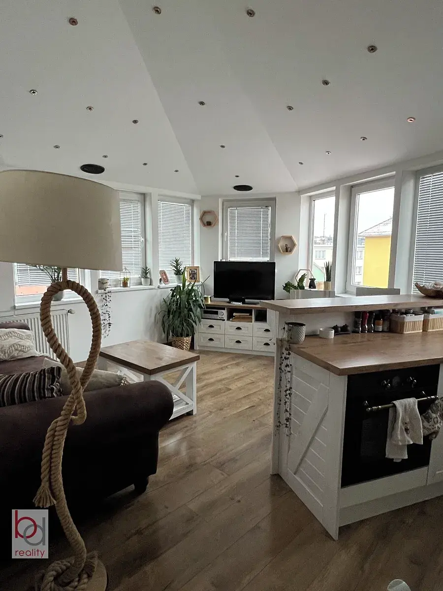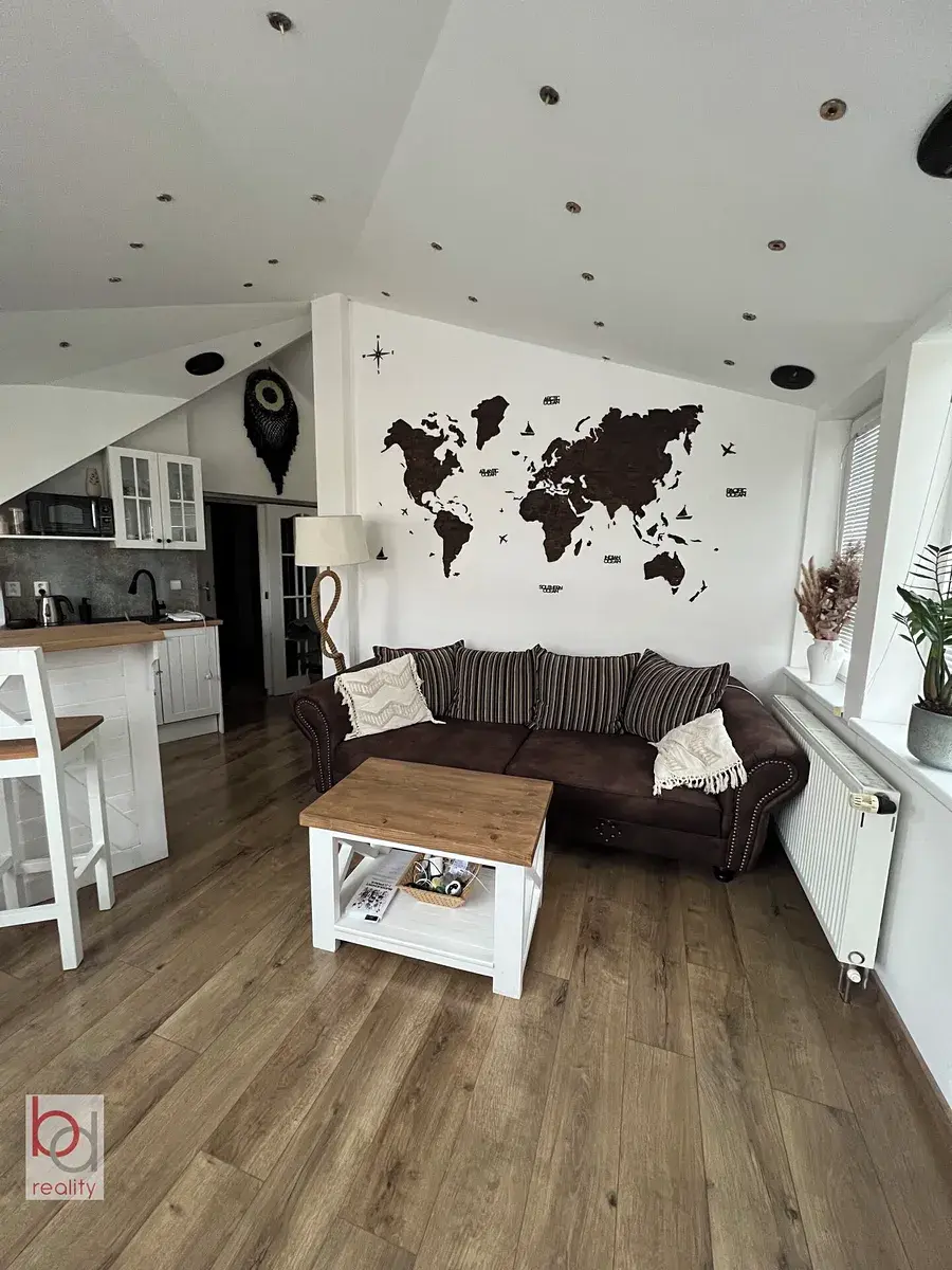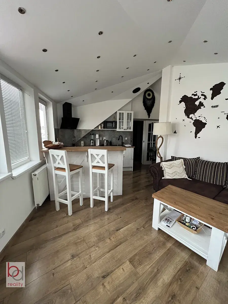 Byt je zařízen kuchyňskou linkou se spotřebiči el.trouba, sklokeramická deska, myčka nádobí, lednice. Ložnice vybavena postelí a šatní skříně. V obývací části gauč a elektrický krb. Koupelna vybavena masážní vanou. Byt se nachází v klidné lokalitě 5 minut od historického centra. Veškerá občanská vybavenost v těsné blízkosti bytu. K dispozici od 01.04.2026. Bez domácích mazlíčků. V domě výtah.