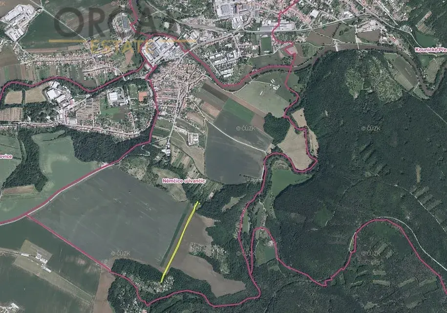 Nabízíme k prodeji spoluvlastnický podíl ve výši id. 4/9 na pozemcích v k.ú. Němčice u Ivančic, okres Brno-venkov. Jedná se o parcely č. 1158/217, 1158/352, 1158/374, 1160/10, 1160/3, 1160/8, 1238/286 a 1606/8 o celkové podílové výměře 1960 m2, zapsané na LV 1934 a LV 2644. Šířka pozemků činí cca 7 m, dle katastru jsou pozemky evidované jako lesní pozemky, orná půda a ostatní plocha, vzájemně si sousedí a nachází se na jihu obce. V územním plánu leží v plochách zemědělských a v plochách lesních. Na parcele č. 1238/286 je uzavřena pachtovní smlouva na dobu neurčitou s výpovědní lhůtou 1 rok.