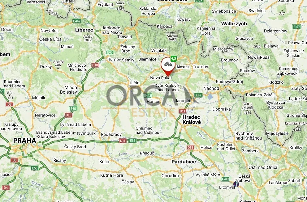 Nabízíme do výlučného vlastnictví dva zajímavé pozemky v k.ú. Mostek, okres Trutnov. Jedná se o parcely č. 820/6, 820/18 zapsány na LV 1166 o celkové výměře 9209 m2 a šířce cca 60 m. Dle katastru jsou pozemky evidovány jako trvalý travní porost, vzájemně sousedí, jsou rovinaté a nachází se na severozápadě obce. V územním plánu jsou pozemky součástí ploch přírodních v lokálním biocentru. V současné době je pozemek propachtován, a to na dobu neurčitou s výpovědní lhůtou 1 rok.