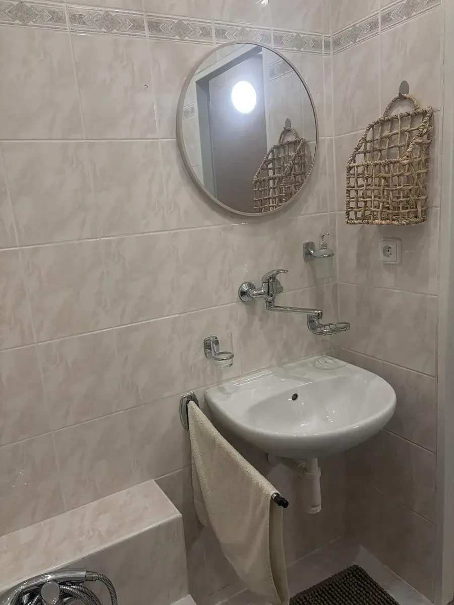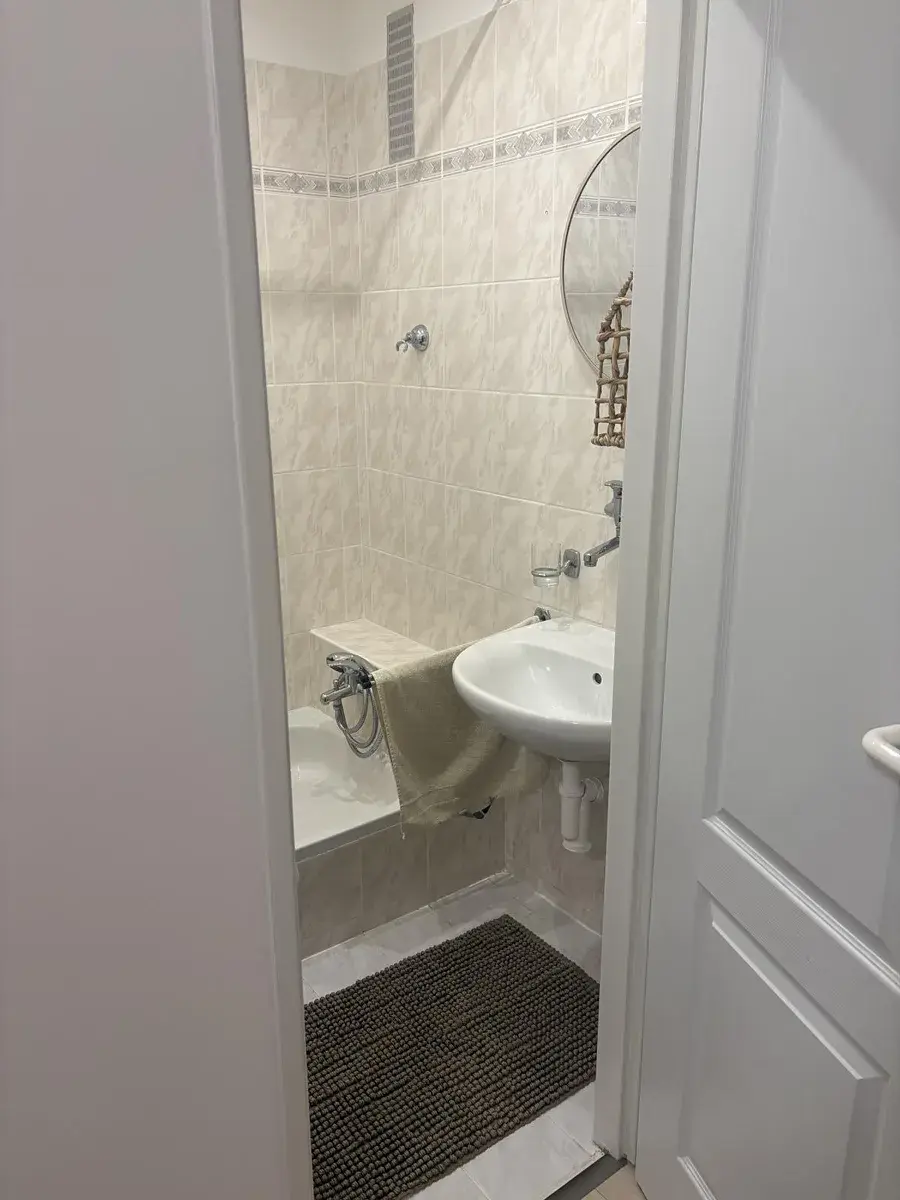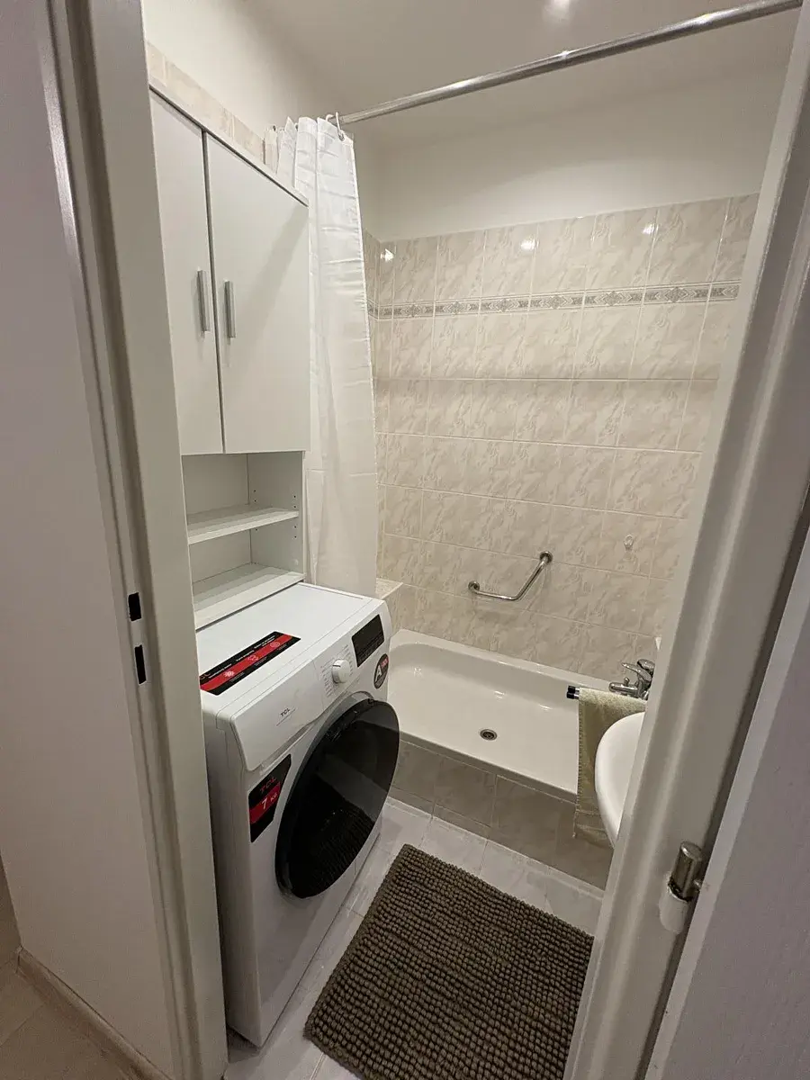 Ve vstupní chodbě je samostatná komora s policemi a věšáky. Koupelna s vanou, pračkou. WC samostatné. Z obývacího pokoje je vstup do prostorné lodžie.