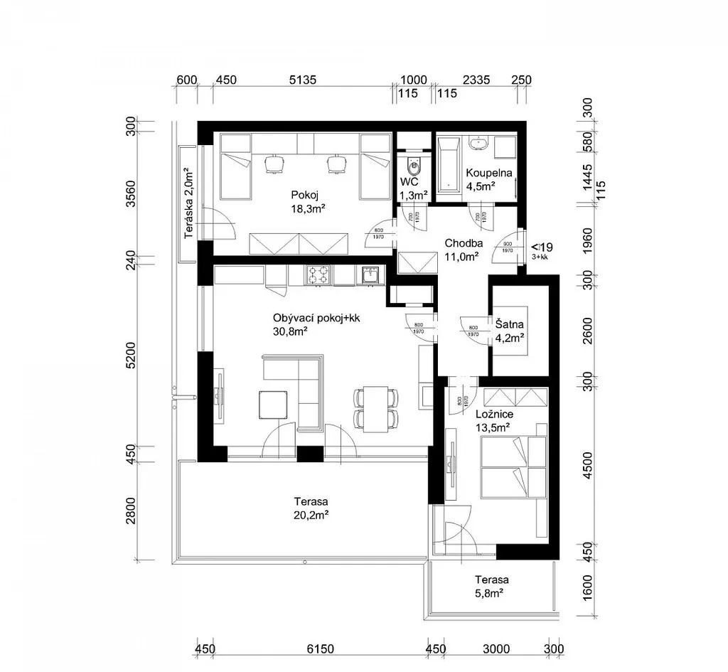 Pronájem nového bytu 3+kk 84 m² s terasami 26 m² Lanškroun