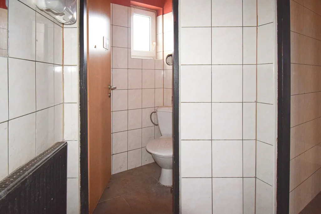 Zázemí tvoří WC pro zaměstnance, šatna a výlevka pro úklid.