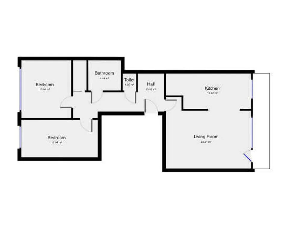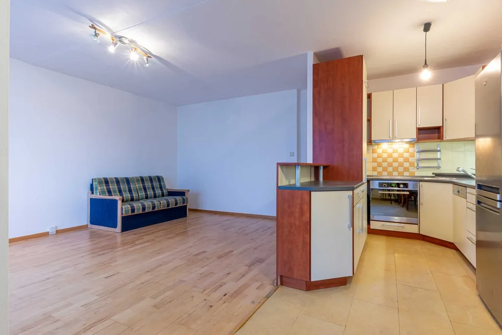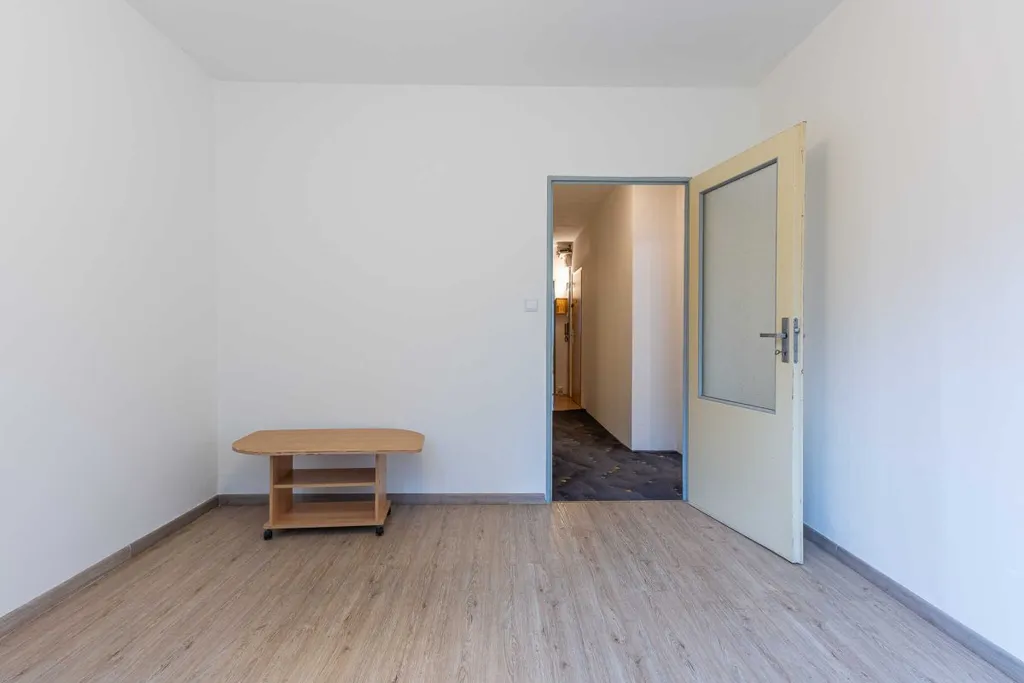 Byt se nabízí vybavený. Pěkná kuchyňská linka disponuje lednicí, myčkou, mikrovlnnou troubou, elektrickou troubou, sklokeramickou deskou a digestoří. V kuchyni se dále nachází jídelní stůl s židlemi. Obývací část je nezařízená. Z pokoje se vchází na balkón. Další dvě ložnice jsou nevybavené. Součástí koupelny je vana, umyvadlo se zrcadlem a pračka. Toaleta je oddělená. Předsíň nabízí dostatek úložného prostoru díky prostorné skříni. Pokoje jsou neprůchozí.