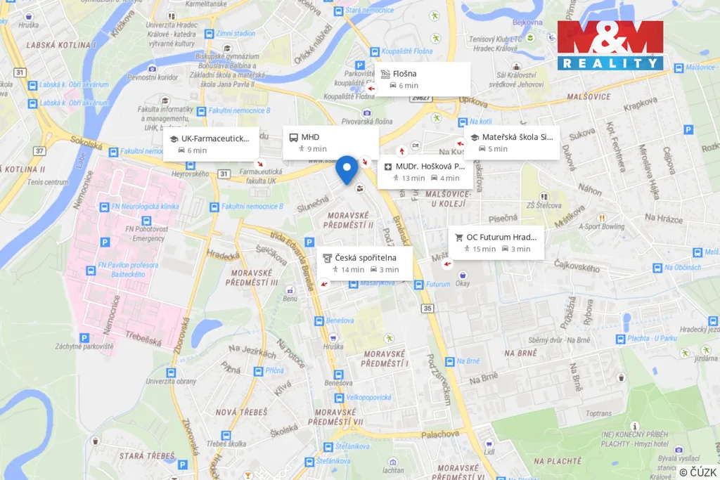 Z bytové jednotky se nabízí krásný výhled na město Hradec Králové a jeho okolí.