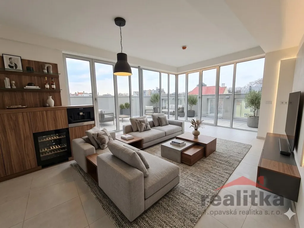 - obrovská terasa 62 m² – největší v centru Opavy, ideální na letní večírky, relax s výhledem nebo soukromou zahradu ve výšce,