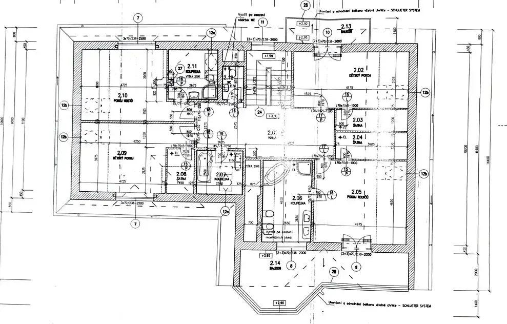V patře se nachází prostorná hala, ze které je vstup do čtyř ložnic. Tři z nich mají vlastní šatnu, dvě jsou vybaveny en-suite koupelnou. Třetí koupelna a samostatná toaleta jsou přístupné z chodby. Dvě ložnice mají přístup na terasu a balkon – a právě tyto pokoje orientované na jih jsou navíc vybaveny klimatizací, která zajišťuje komfort i v letních měsících.