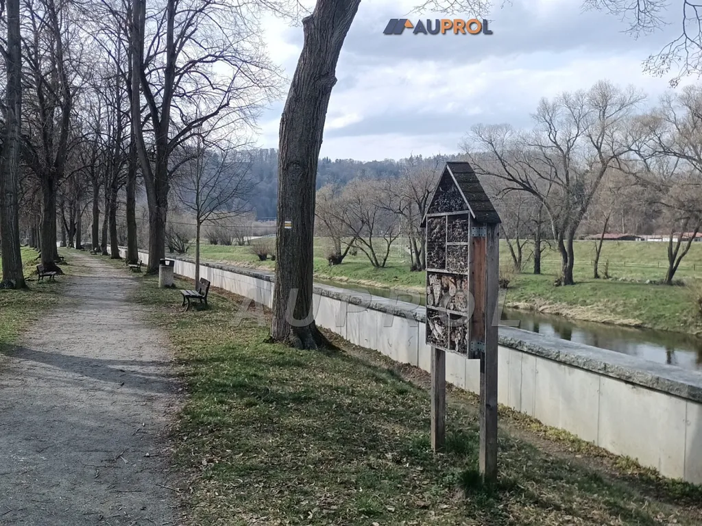 Vzdálenost je cca 120 m od řeky, ale záplavová zóna je až pod ním, což zajištuje jistotu dostatku prostoru, výhledu a soukromí, kdy v této oblasti nebude možno nic stavět.
