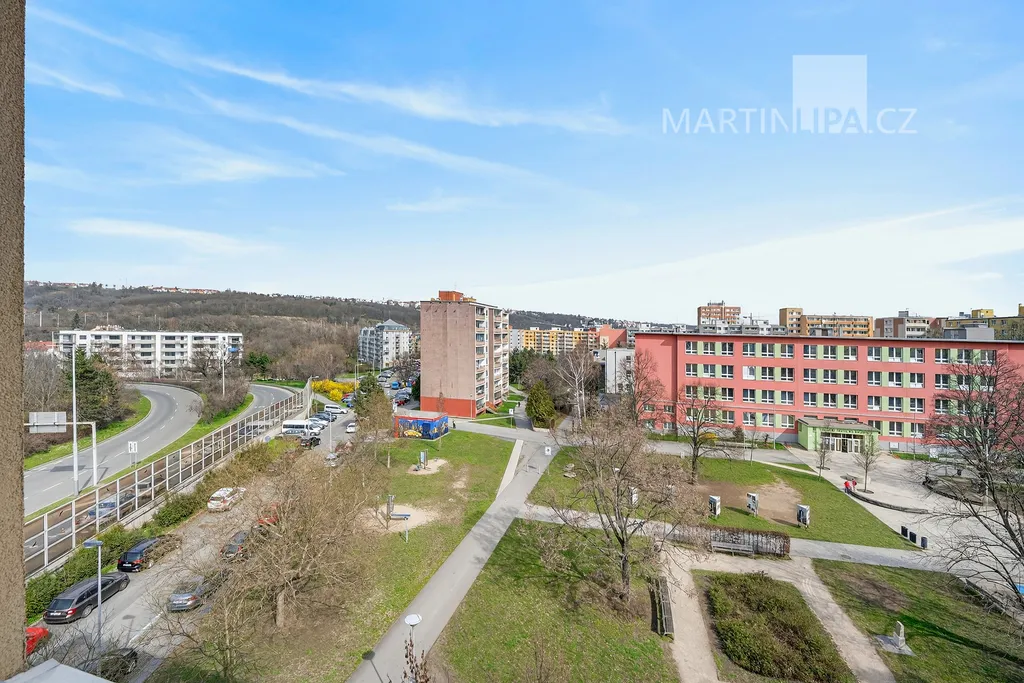 Balabenku jsem měl celé dlouhé roky zaškatulkovanou jednoduše: velká křižovatka, hodně aut, místo, kterým se spíš projíždí, než kde by člověk hledal domov. A o to víc mě baví, když narazím na byt, který tenhle první dojem úplně rozbije. Tohle je přesně ten případ. Poctivý byt 2+1 v pěkném zatepleném cihlovém domě s výtahem, v pátém patře, s užitnou plochou 55 m² plus 2 m² sklepem.