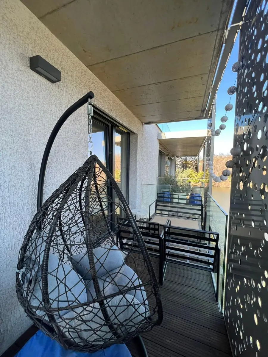 Interiér je kompletně zařízený moderním nábytkem a spotřebiči, připravený k okamžitému nastěhování bez dalších investic. Dispozice je praktická a vzdušná, ideální jak pro jednotlivce, tak pro pár.