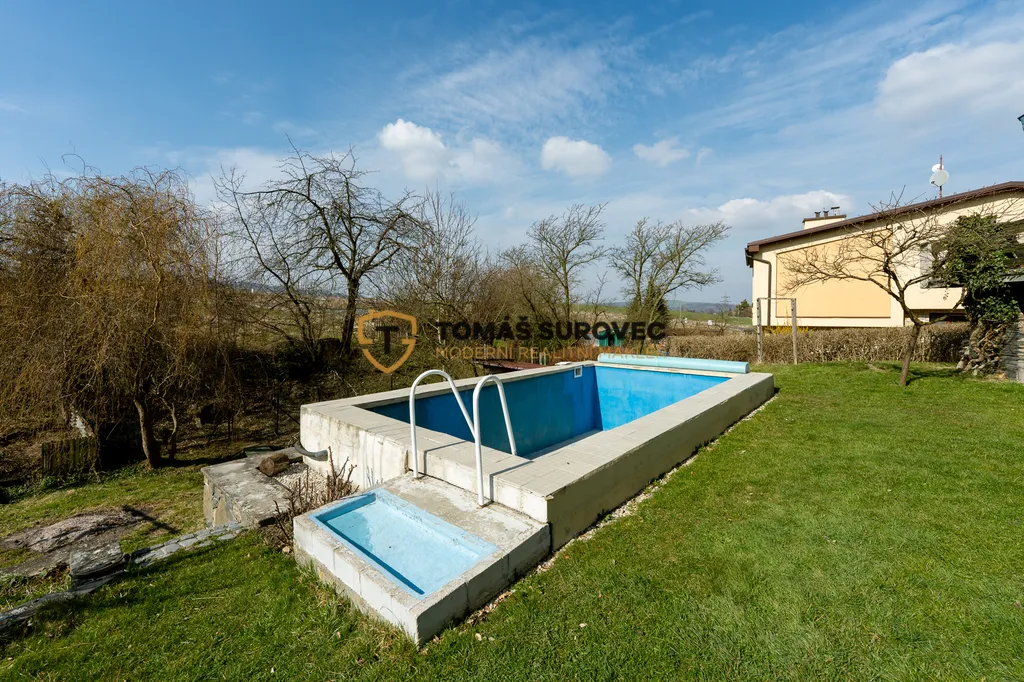 Suterén domu přidává další rozměr využití. Najdete zde garáž, technické zázemí a zároveň prostor, který si můžete přetvořit podle vlastních představ, ať už jako domácí wellness nebo odpočinkovou zónu s přímým vstupem na zahradu. Ta nabízí dostatek soukromí i prostoru pro rodinný život. Nechybí bazén s ohřevem pomocí tepelného čerpadla, skleník ani místo pro relaxaci a setkávání.
