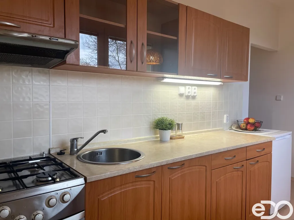 Byt má praktické a jednoduché uspořádání poskytující dostatek soukromí. Dispozice zahrnuje obývací pokoj s pohovkou, úložnými prostory a pracovní kout, samostatnou ložnici se skříní, kompletně vybavenou kuchyni s kuchyňským koutem, koupelnu se sprchovým koutem a WC a prostornou předsíň rovněž s úložnými prostory. V bytě je také možné připojení k internetu. V rámci pronájmu jsou zahrnuty sklep, společný prostor pro kola a sušárna.