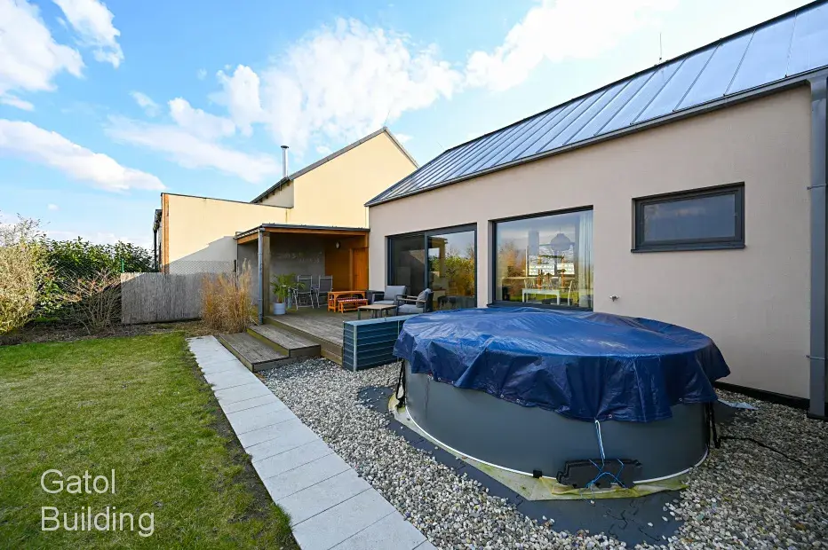 Na pozemku naleznete bazén, zahradní domek, záhony, houpačku a posezení na terase. Před domem je možnost parkování a vedle domu je kryté stání, což zvyšuje komfort a kvalitu bydlení. Dům je vybaven a připraven k okamžitému nastěhování.