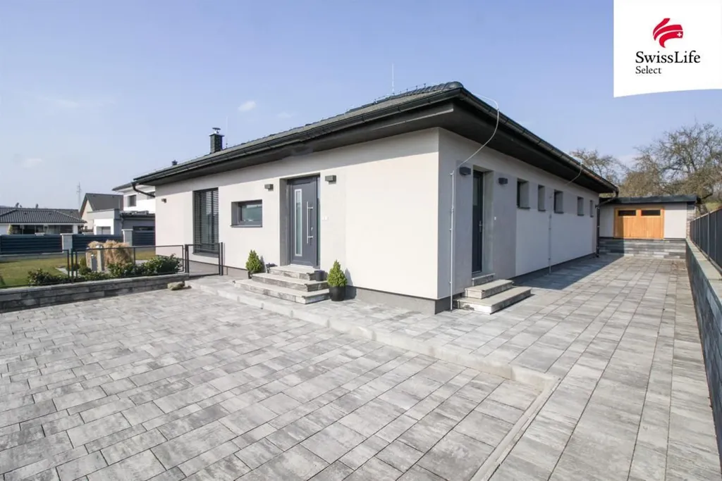 Nechybí ani praktické zázemí: sklad či prostorná dílna a další zastřešený prostor na kola nebo zahradní techniku. Vše se vstupem ze zahrady.