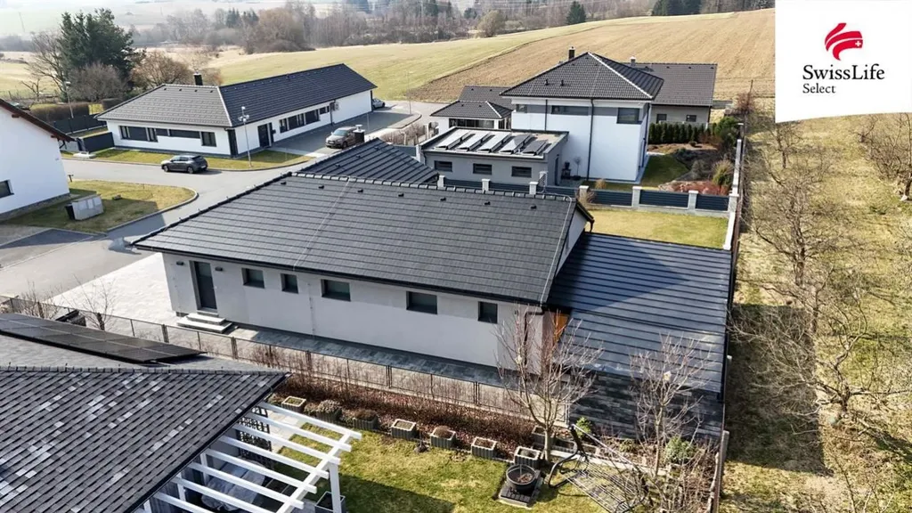 Tento dům byl navržen s důrazem na pohodlí, prostor a harmonii s okolím. Srdcem domu je slunný obývací pokoj s kuchyňským koutem, odkud se přímo vstupuje na prostornou terasu s přípravou na vířivku ideální místo pro letní večery, rodinné oslavy nebo klidné chvíle jen pro vás. Díky orientaci od jihu na západ je interiér po celý den zalitý přirozeným světlem.