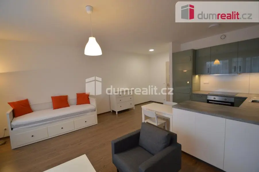 Dumrealit.cz Vám zprostředkuje možný pronájem bytu 1+kk 40 m² v novém projektu přímo u metra. Jedná se o úplně nový, kompletně zařízený byt. Vstup do předsíně, kde bude velká šatní skříň. Dále koupelna s novou pračkou, sprchovým koutem a toaletou. Obývací pokoj je spojený s novou, kompletně vybavenou kuchyní (myčka na nádobí, lednice s mrazákem, trouba, sklokeramická varná deska, digestoř). Velká rozkládací postel, konferenční stolek, nová TV- Samsung. Kuchyňský stůl se židlemi. K bytu náleží garážové stání v domě a sklepní kóje a je v ceně pronájmu. Bez zvířat, max. pro dvě osoby. K nastěhování od 1.5.2026. Doporučuji. Ev. číslo: 650600.