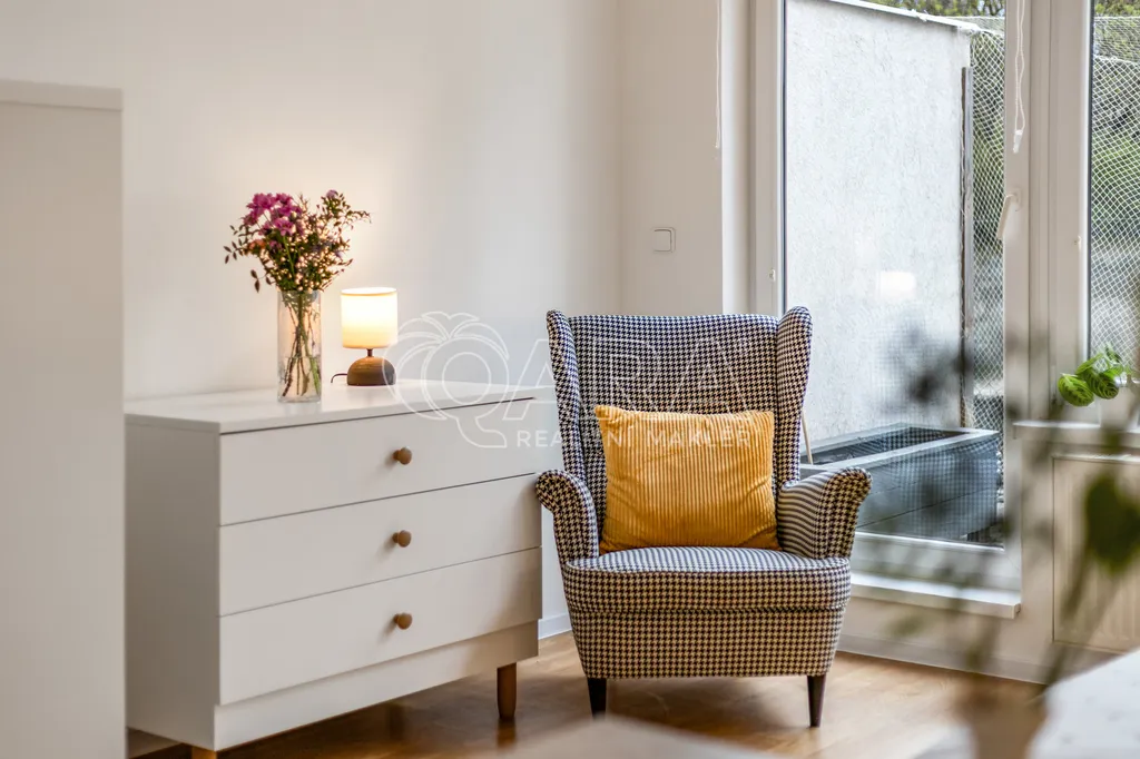 Tento byt vás překvapí svou atmosférou hned při první návštěvě. Jeho hlavním kouzlem je propojení interiéru s venkovním prostorem. Z obytné místnosti můžete vstoupit přímo na terasu s vlastní zahrádkou, která vytváří tiché, zelené útočiště uprostřed města. Ideální místo na ranní kávu, večerní sklenku vína, drobné zahradničení a odpočinek na čerstvém vzduchu.