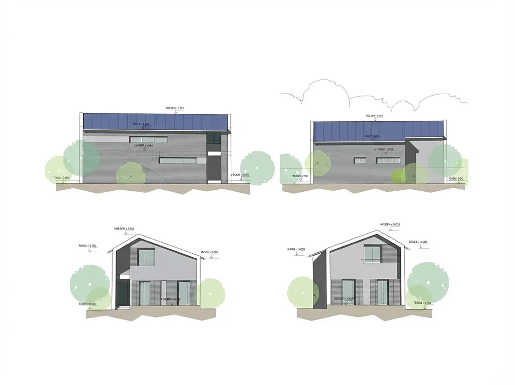 Součástí ceny pozemku je projekt patrového rodinného domu 5+kk (obývací pokoj s kuchyní, 4 ložnice, 2 koupelny a 2 WC, technická místnost) o celkové obytné ploše 125 m2.