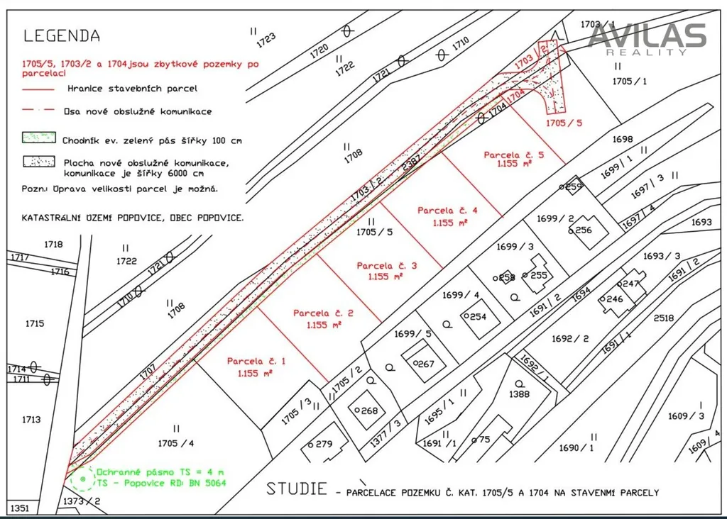 Pozemky jsou určeny pro stavbu rodinných domů s vypracovaným záměrem na geometrické dělení pro 5 samostatných stavebních parcel. Pozemky jsou dle platného ÚP zařazeny ve smíšené obytné ploše. Polohově jde o „poslední pozemky“ na okraji obce. Jedná o slunné nestíněné místo v obci Popovice.