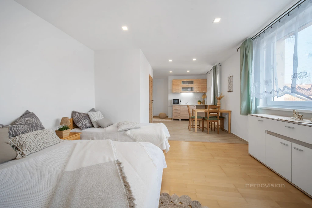 Dům o užitné ploše 111 m², stojící na pozemku 228 m², je prakticky rozdělen na čtyři samostatné apartmány, které umožňují maximální flexibilitu využití.