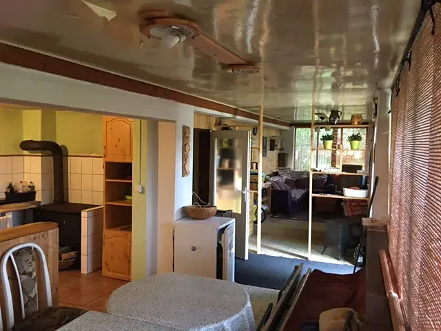 V chalupě je zavedena elektřina (měsíční zálohy činí cca 450,-Kč) a voda. Jsou zde k vytápění krbové kamna.