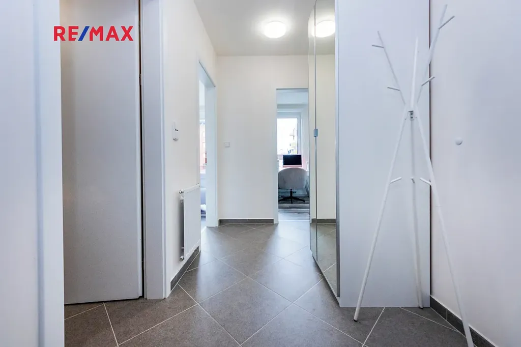 Dispozice bytu nabízí světlý obývací pokoj s kuchyňským koutem, dvě samostatné ložnice, dvě koupelny (jednu s vanou a druhou se sprchovým koutem) a samostatné WC, což zajišťuje maximální komfort pro rodinné bydlení. Velkým benefitem jsou dvě parkovací stání v podzemní garáži zahrnutá v ceně, což je v dnešní době výrazná přidaná hodnota. K bytu náleží také prostorná sklepní kóje a v domě je k dispozici kolárna.