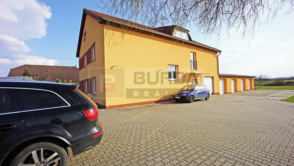 Jedna garáž je integrována v hlavní hmotě domu a další 4 garáže o velikosti 4 x 10 m jsou v přístavbě. Objekt je napojen na vodovod, plynovod, kanalizaci a elektřinu v ulici. Odběr elektřiny, vody a plynu si nájemce převede na sebe.
