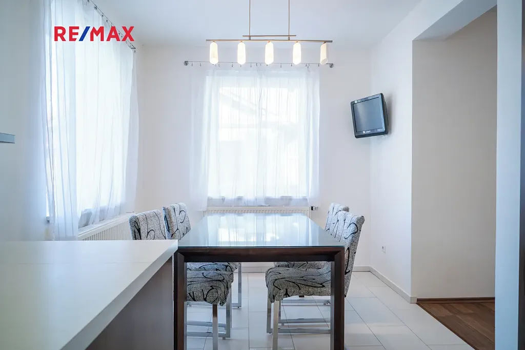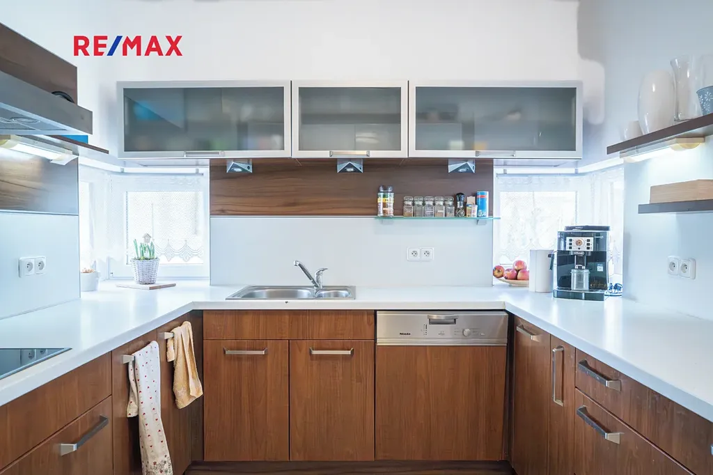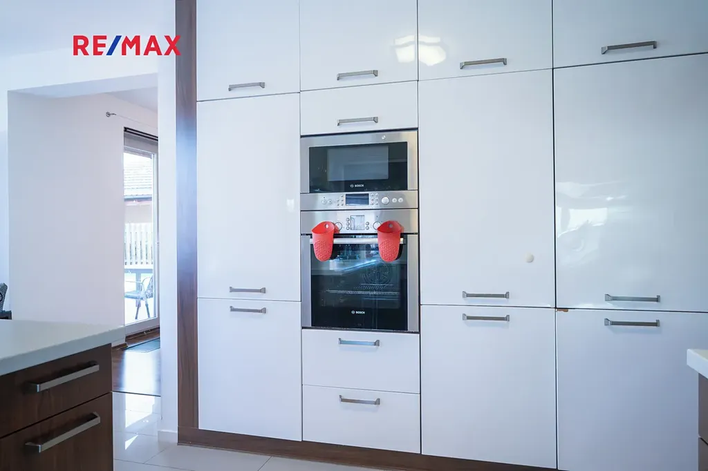 Kuchyň je řešena samostatně, což oceníte při každodenním provozu domácnosti. Nabízí dostatek pracovního i úložného prostoru a navazuje na jídelní část, která je ideálním místem pro společné stolování i klidné ranní chvíle.