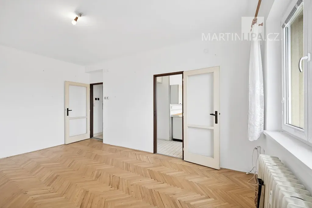 Kuchyň je zde opravdu samostatným prostorem s vlastním oknem. To je přesně ten typ dispozice, který vám nechává svobodu. Můžete si ponechat klasické, praktické 2+1, nebo při rekonstrukci koncept posunout dál a otevřít byt modernějšímu stylu života tím, že ji propojíte s obývákem.