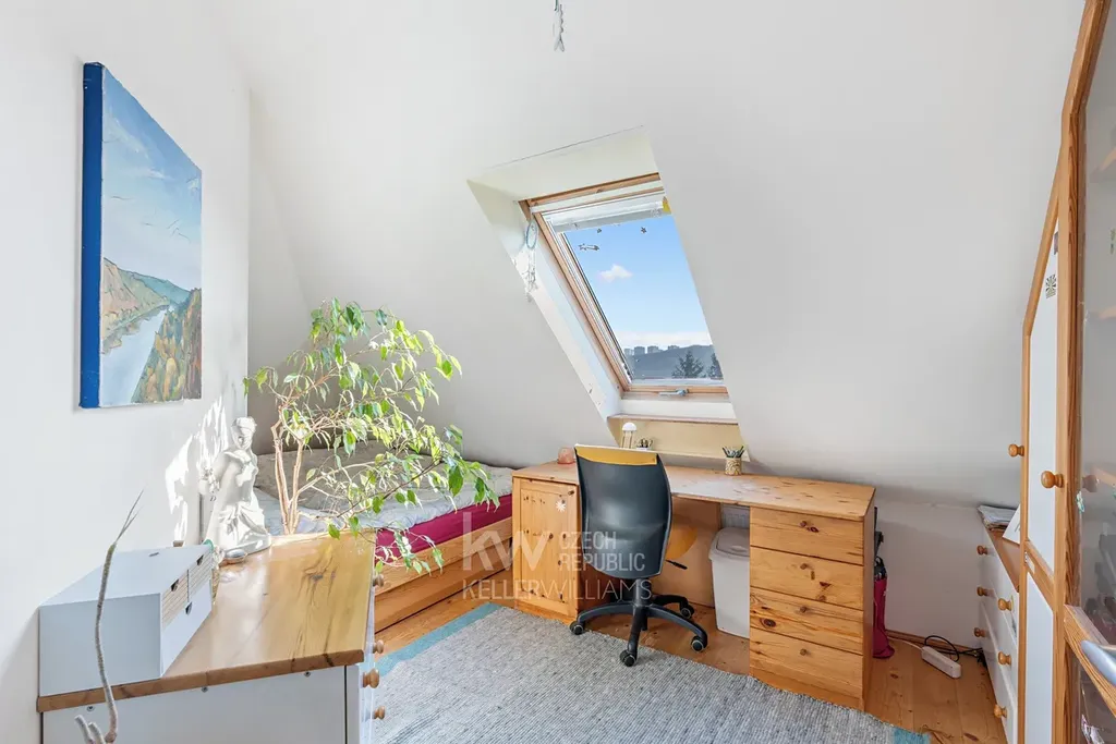 - podkroví (cca 46 m²) - aktuálně využívané, ale není zkolaudované jako obytný prostor