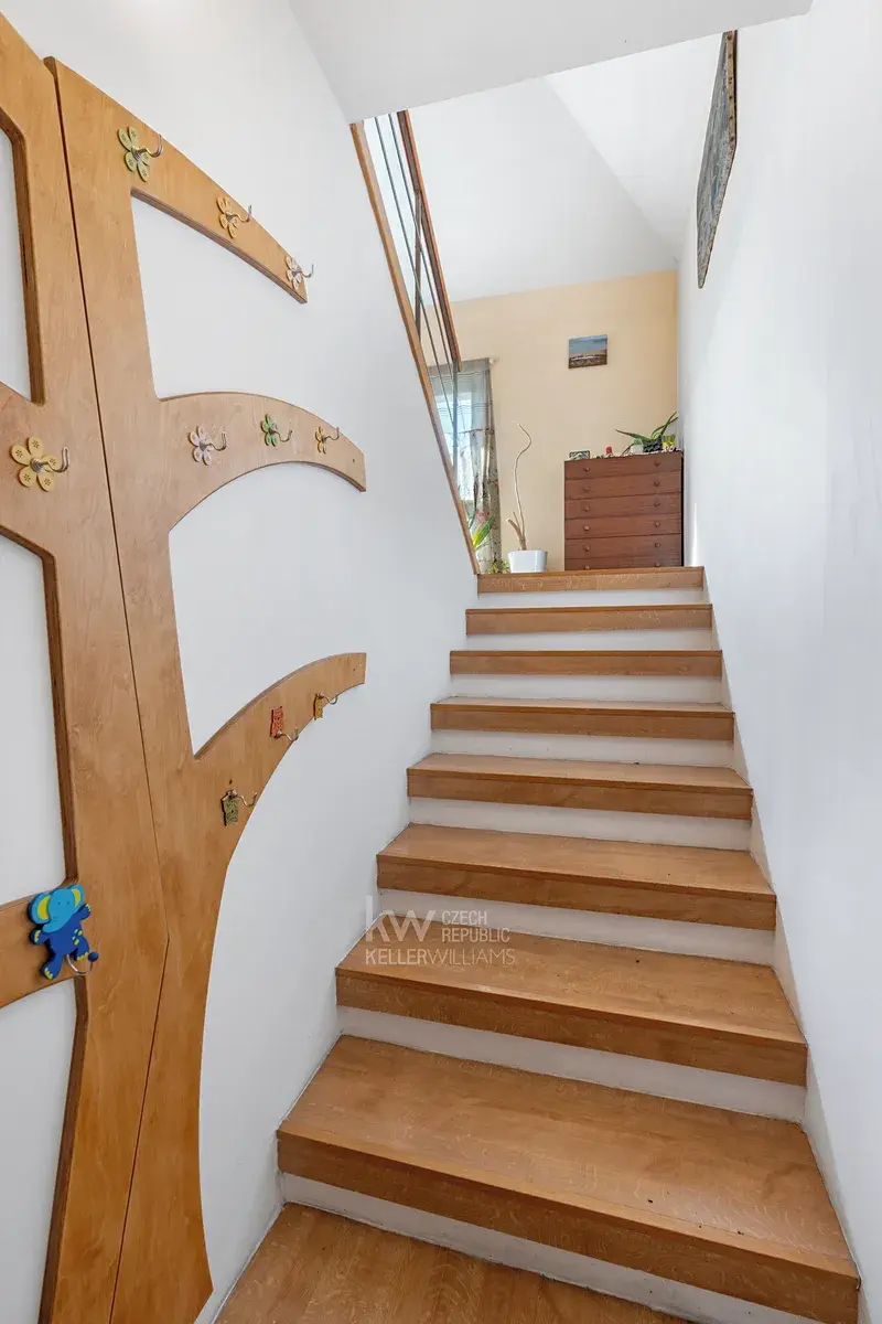 - 2. NP (cca 61,1 m²) - druhá jednotka 2+kk se schodištěm do podkroví