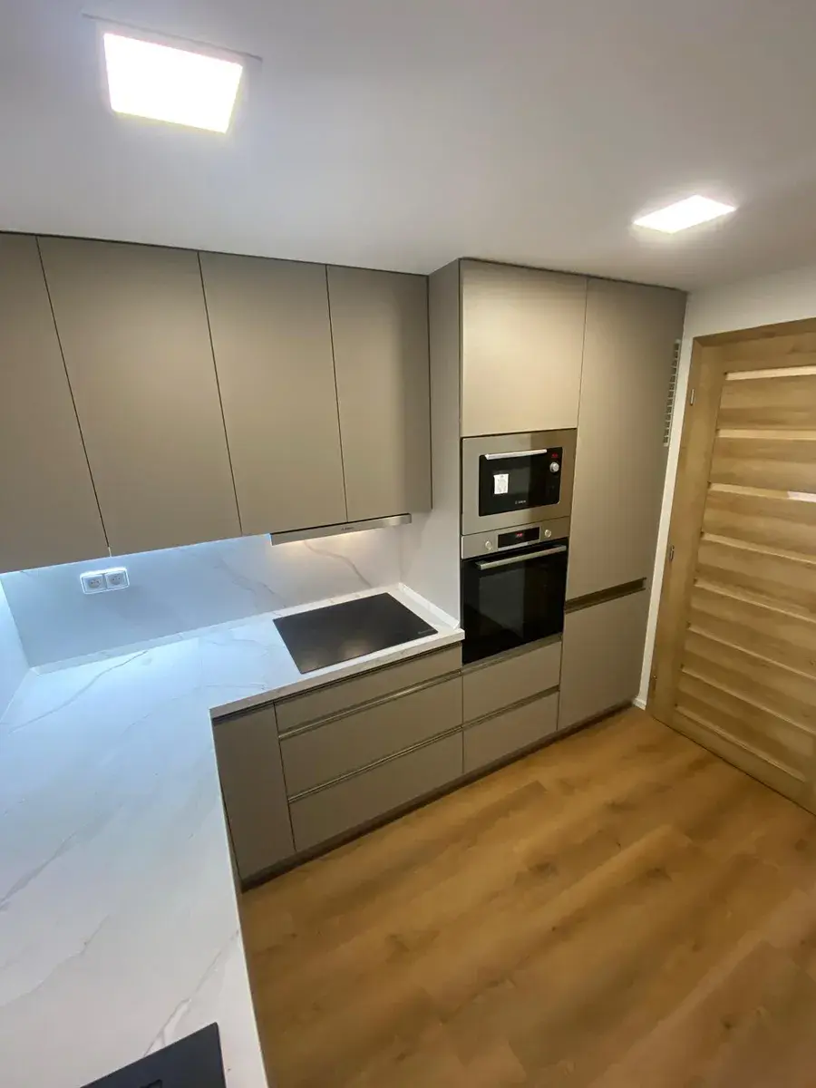 Kuchyň je vybavena nadstandardní kuchyňskou linkou s vestavěnými spotřebiči značky BOSCH (lednice, sporák, digestoř, mikrovlnná trouba).