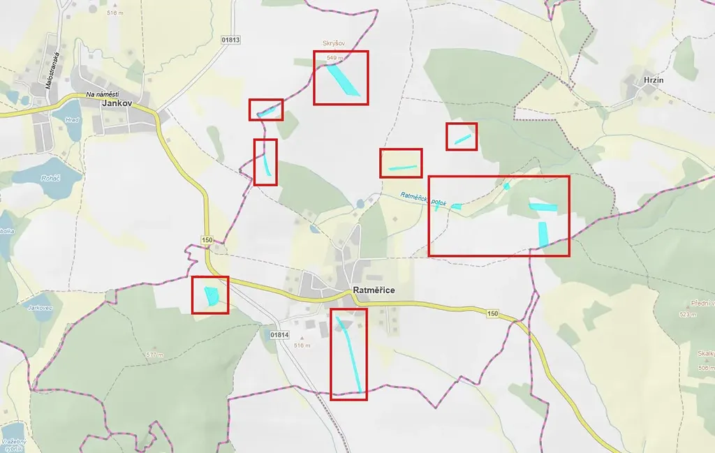V kú Ratměřice se jedná o všechny pozemky na LV 209