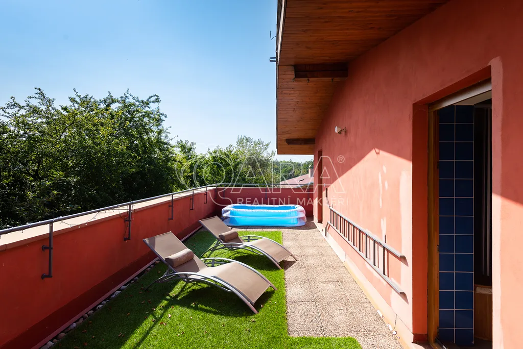 Součástí domu je rovněž garáž (27 m2). Na zahradě je vystavěný altán, kdy dole je úložný prostor a nahoře letní kuchyň s kouzelným posezením.