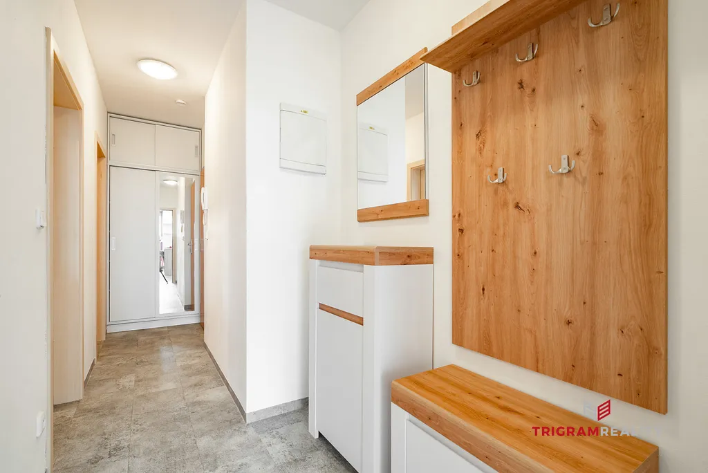 Úložné prostory: Na chodbě se nachází vestavěná skříň a další menší skříňka.