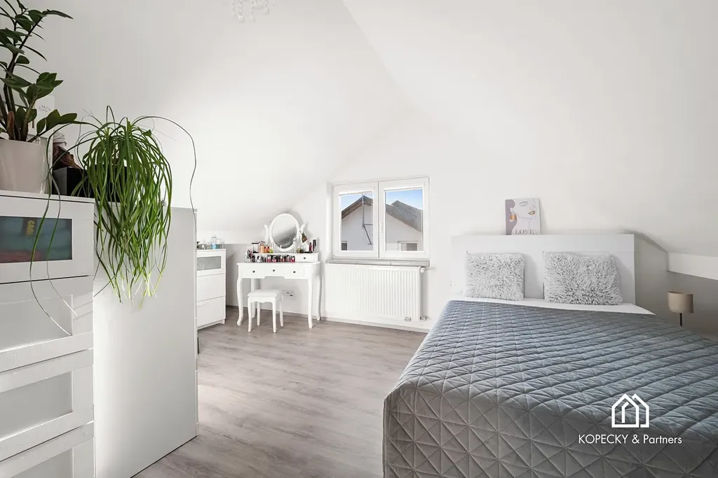 Byt nabízí 79 m² plně užitné plochy, což je pro dispozici 2+kk nadstandardní hodnota. Velkou výhodou jsou také podkrovní úložné prostory o velikosti přibližně 51 m², přístupné přímo z bytu. Celková podlahová plocha tedy činí 130 m², což majiteli poskytuje výrazně více flexibility než běžné byty této kategorie.