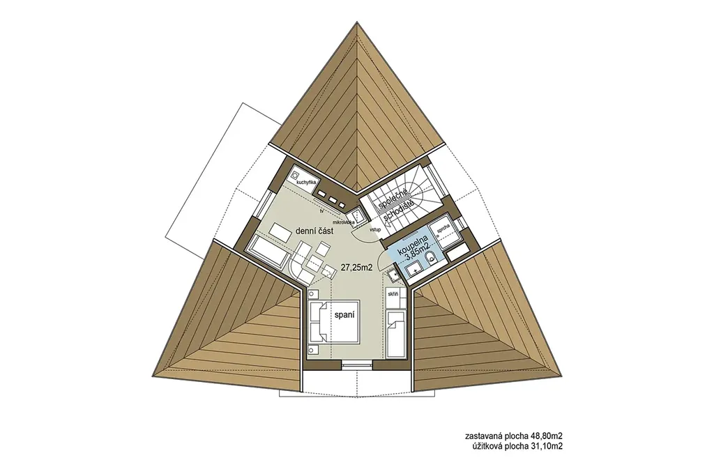 Vila je postavena na trojúhelníkovém půdorysu a disponuje čtyřmi patry s plně vybavenými apartmány. Každý detail byl pečlivě promyšlen, aby poskytoval maximální komfort a estetický zážitek. Moderní kuchyně s exkluzivním vybavením vám přinese radost z vaření, zatímco otevřený obývací prostor je ideální pro setkávání s rodinou a přáteli.