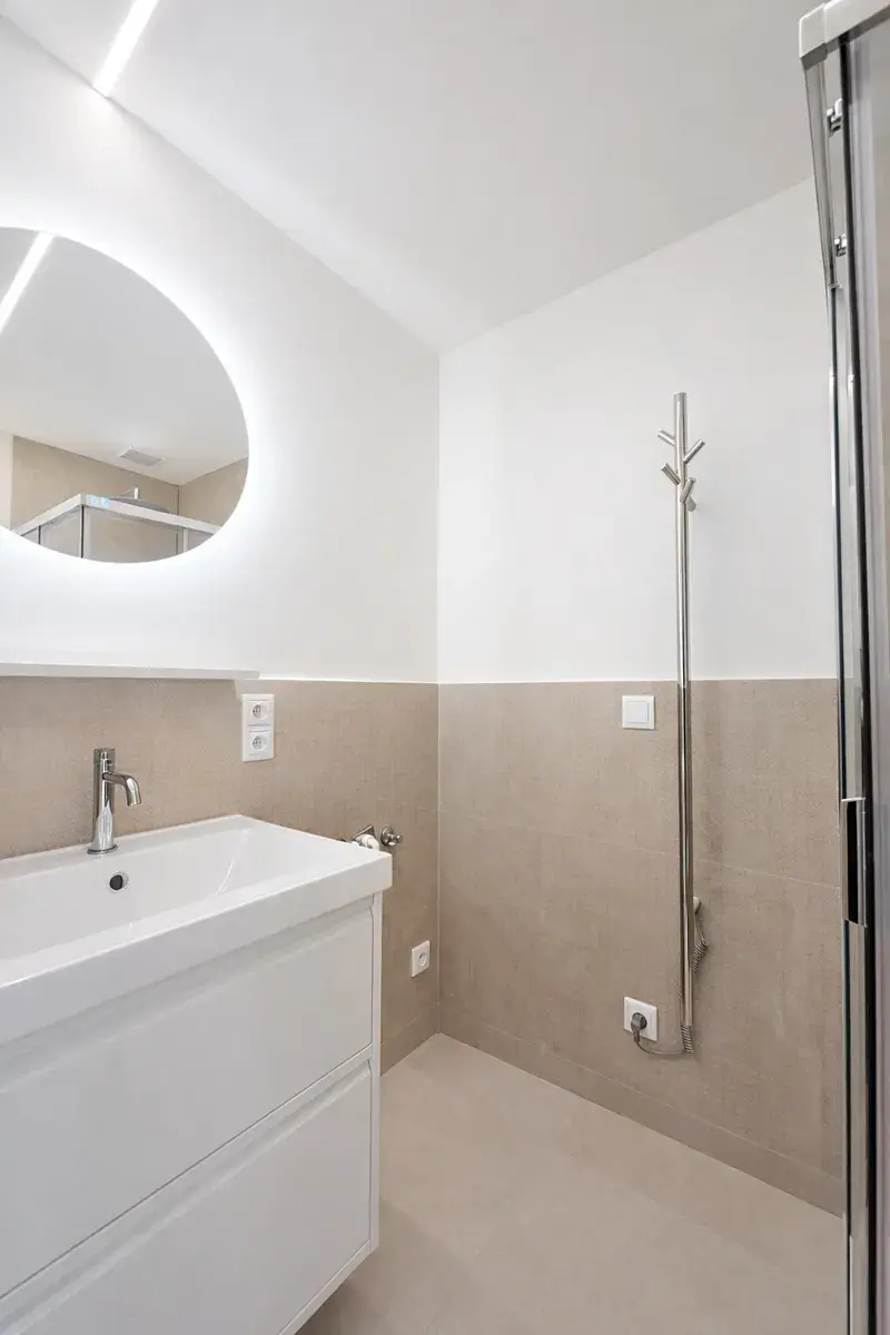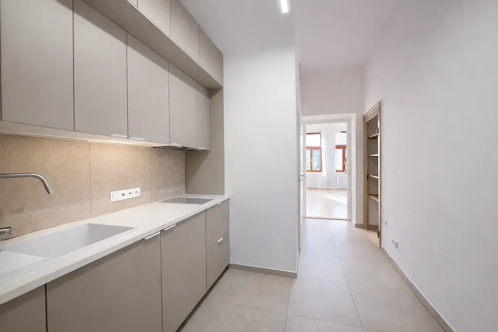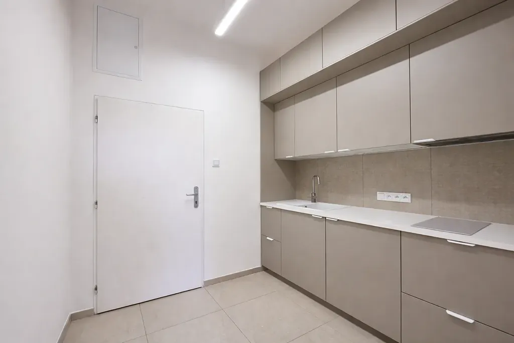 Byt nabízí moderní a funkční dispozici s důrazem na čistý design a komfort. Součástí je nová kuchyňská linka se spotřebiči (indukční varná deska, lednice s mrazákem). V případě zájmu je možné byt dovybavit pračkou.
