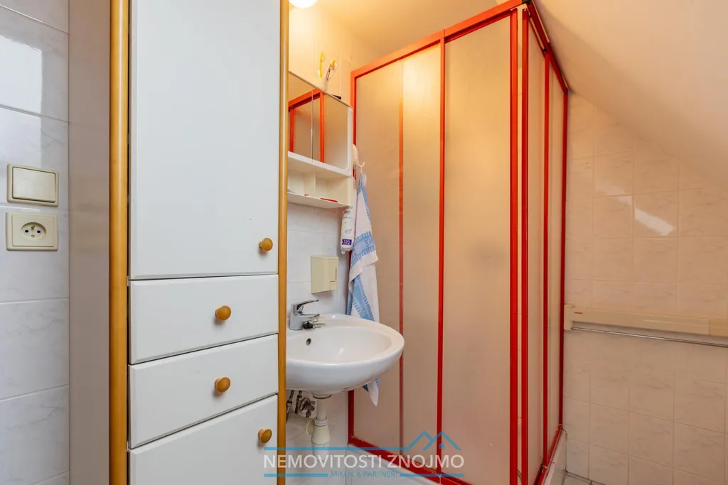 g.) koupelna se sprchovým koutem, bojlerem a umyvadlem