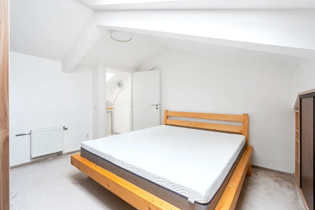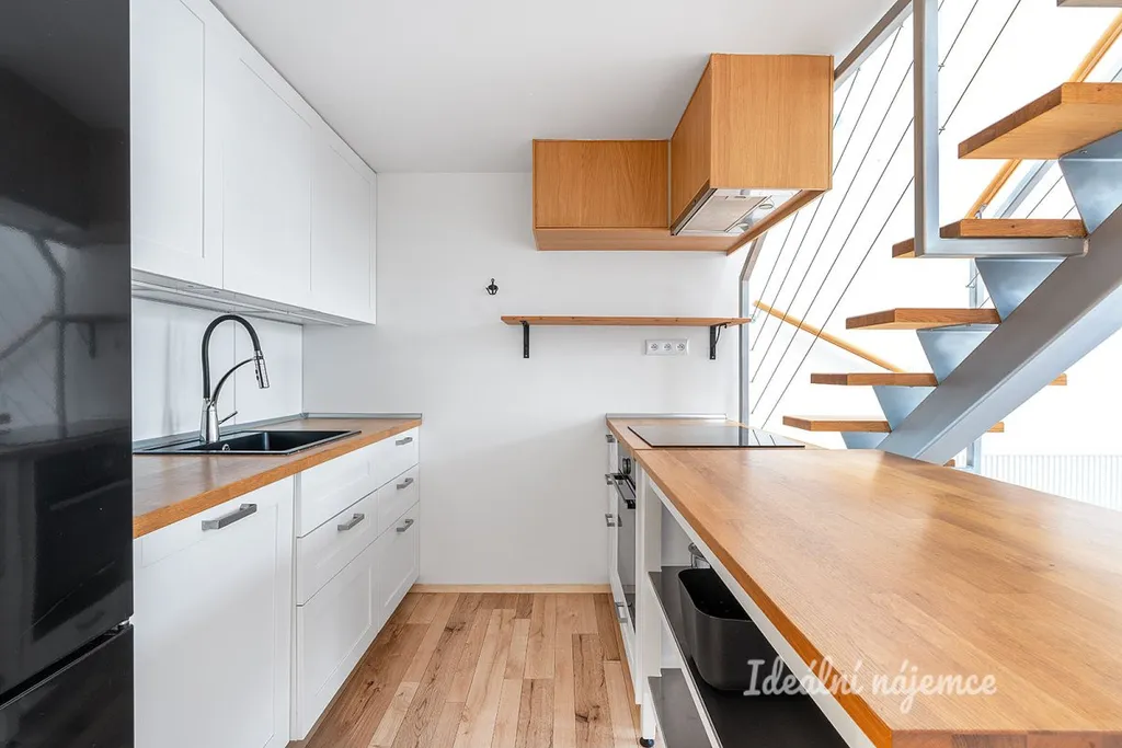 Exkluzivně k dlouhodobému pronájmu nabízíme elegantní plně zařízený atypický mezonetový podkrovní byt 2+kk o rozloze 63 m2 v rezidenci Byty Lochkov vzniklé rekonstrukcí bývalého Lochkovského pivovaru. Bytu vévodí vzdušný světlý obývací pokoj se stylovou kuchyní a schodištěm vedoucím do ložnice v patře vybavené úložnými prostory na míru.