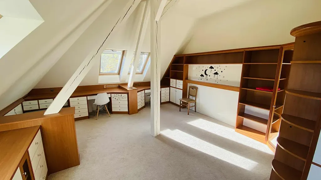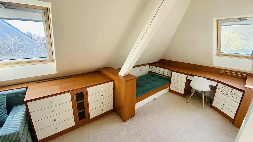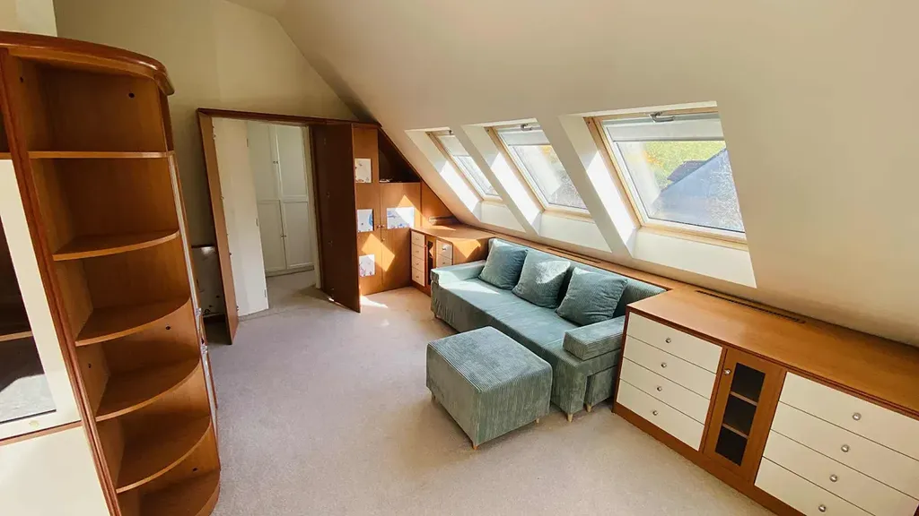 Hlavními částmi bytu jsou velmi prostorná obývací část s velkým proskleným atriem směrem do zahrady (zahrada však není součástí nájmu), plně vybavená nová kuchyně s jídelnou a plně zařízený dětský pokoj s komplet nábytkem na míru. Obývací pokoj a ložnice jsou bez zařízení nábytkem.
