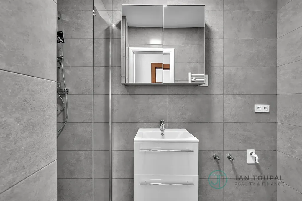 Koupelna: Se sprchovým koutem, místem pro pračku a samostatnou toaletou.