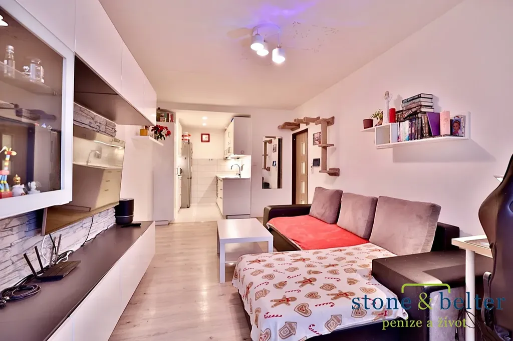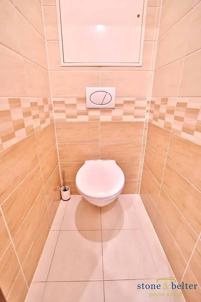 Kuchyň je vybavena kvalitními spotřebiči. Koupelna a WC prošly před 5 lety zdařilou rekonstrukcí. V chodbě a kuchyni je dlažba, v obývacím pokoji plovoucí podlaha. Plastová okna mají izolační dvojskla a žaluzie. Vytápění je ústřední z centrální kotelny. V domě je optický internet, bezbariérový přístup a 2 výtahy. Velmi úsporná energetická třída PENB B.