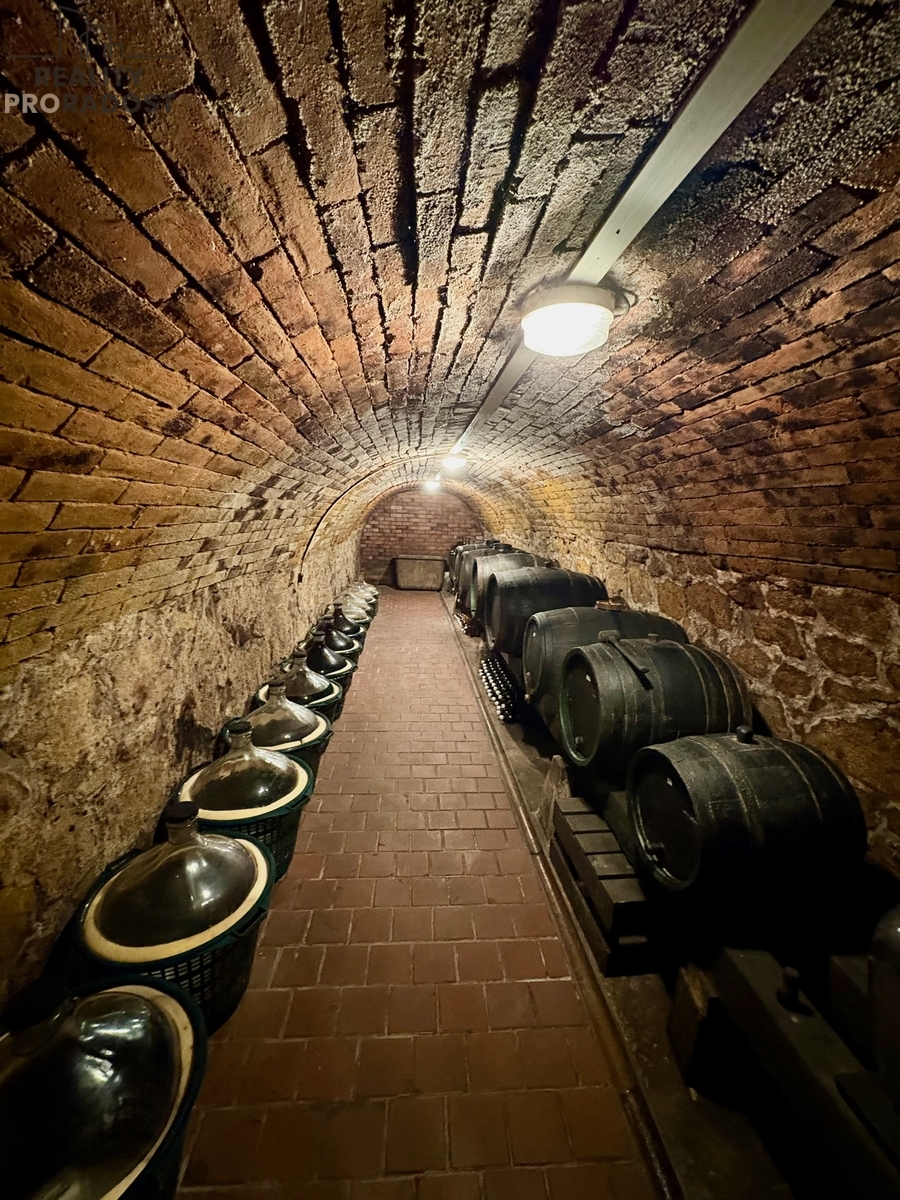 Ve výhradním zastoupení majitele nabízíme k prodeji pěknou nemovitost v srdci vyhledávané vinařské obce Valtice v místní části Úvaly. Objekt v sobě spojuje bydlení/ubytování, dva sklepy, zázemí pro výrobu vína, dvě garáže, zahradu a rozsáhlý vinohrad 1298 m2. Zastavěná plocha domu je 101 m2. V horní části sklepa, do které je vstup přímo z ulice, se nachází velký prostor ideální pro skladování a uskladnění vinařských potřeb, či k přestavbě na různé účely. Nemovitost má hlavní obytnou místnost s krbovými kamny, kuchyní, obývacím pokojem a částečně oddělenou ložnicí. Dále na patře je chodba, koupelna a WC. Do obytného patra se vstupuje ze zadní části, kde je před vchodem příjemná terasa – ideální místo pro grilování a posezení s přáteli u vinohradu. Oba historické sklepy jsou klenbené, mimořádně prostorné a se samostatným vchodem. Lze zde vytvořit příjemné posezení a výborné k archivaci vína v ideálních podmínkách. Výhodou je i přístup z obou stran, což umožňuje pohodlné využití vinice a zahrady.