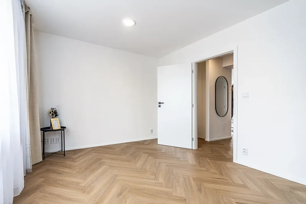 Byt prošel kompletní, zdařilou a precizní rekonstrukcí, která odpovídá standardům novostavby. Interiér je navržen s důrazem na čisté linie, funkčnost a nadčasovou eleganci.